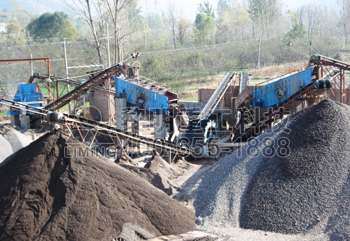 大塊石料經料倉由振動給料機均勻地送進鄂式破碎機進行粗碎,粗碎后的石料由膠帶輸送機送到反擊式破碎機進行進一步破碎;細碎后的石料由膠帶輸送機送進振動篩進行篩分,篩分出幾種不同規格的石子,滿足粒度要求的石子由成品膠帶輸送機送往成品料堆;不滿足粒度要求的石子由膠帶輸送機返料送到反擊式破碎機進行再次破碎,形成閉路多次循環。成品粒度可按照用戶的需求進行組合和分級,為保護環境,可配備輔助的除塵設備。為滿足客戶不同的加工需要,可配備圓錐式破碎機、除塵設備等。