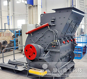 主機通過電機、三角皮帶帶動主軸,從而使轉子旋轉,錘頭受到旋轉時所產生的離心力向四周伸開,大塊物料從進料口進入破碎腔之后,便被高速運動的錘子擊碎。破碎合格的物料則由下部有縫隙的蓖條排出,不合格的則留在破碎腔內,被錘子和承擊鐵塊反復作用,直至能夠合格排出。