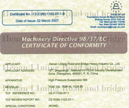 [CE認(rèn)證]熱烈祝賀公司梯形磨高壓磨通過歐盟CE認(rèn)證