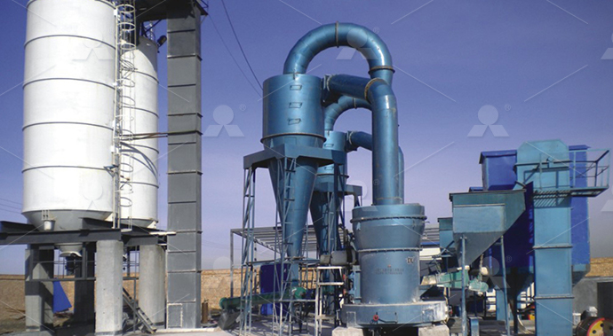 第二階段:磨粉破碎后的小塊石膏經提升機送至料倉,再經振動給料機將其均勻定量的送入磨粉機研磨室內進行研磨。