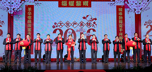 大生產系統新年祝語:恭祝2016 福耀黎明 暢享才藝生花的視覺盛宴,堅守凝心聚力的步履鏗鏘。